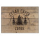 Tablero personalizado con un diseño rústico de madera marrón y árboles boscosos pintorescos con texto personalizado. Ideal para una cabaña familiar, una casa lago, un refugio rústico o un refugio natural y un establecimiento de alquiler de casas de vacaciones. ASISTENCIA: Para obtener ayuda con la modificación o personalización del diseño, el cambio de color, el redimensionamiento, la transferencia del diseño a otro producto o si desea coordinar elementos, póngase en contacto con el diseñador ANTES DE PEDIDOS a través de la pestaña del MENSAJE de charla de Zazzle o envíe un correo electrónico a makeitaboutyoustore@gmail.com.