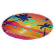 Un ilustracion colorido y vibrante de una puesta de sol tropical sobre un océano tranquilo con palmeras enclavadas en el cielo. Ideal para crear un ambiente relajante y sereno (Este diseño hecho con IA). ¡Haga el pedido hoy y acepte la alegría de ir de compras!