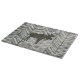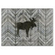 "Rustic Wood Moose Bienvenidos a nuestro Cabin Lodge Cutting Board". Un negro con toques de tipografía marrón oscuro, el alce de toro de silueta es el diseño central, rodeado por el mensaje tipográfico escrito a mano: "Bienvenidos a nuestra Cabina" y su apellido. El estilo rústico y la decoración de cabaña de madera completan la decoración rústica con un fondo de arenisca, corteza de abedul con motivos de chevron y textura de madera. Pintado a mano en acrilics sobre lienzo por la artista y diseñadora con licencia internacional, Audrey Jeanne Roberts. Derechos de autor.