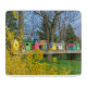Esta tabla de corte de cristal muestra una hilera de casas de pájaros coloridas disfrutando del sol de primavera. Un bosque amarillo, árboles, cielo azul y hierba verde rodean la hilera de casas de aves únicas. Muestra tu amor por los amigos de plumas y sus casas de aves.