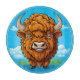 Bison de dibujos animados expresivo en un entorno colorido, mostrando carácter y alegría contra un fondo vibrante que incluye un cielo azul con nubes suaves y campos.