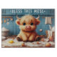 Add a dash of humor and heart to your kitchen with this irresistibly charming cutting board! Featuring a wide-eyed baby cow caught in a baking catastrophe—surrounded by broken eggs, flour clouds, and scattered utensils—this design is a delightful tribute to the joyful chaos of home cooking. The phrase “Bless This Mess” floats above the scene like a wink to every flour-dusted apron and recipe gone rogue.