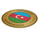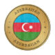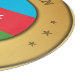 La bandera nacional de Azerbaiyán está infundida en una falsa forma de anillo de oro que ha doblado los bordes interior y exterior. En la parte superior e inferior del anillo está el nombre del país, y seis estrellas decorativas completan el diseño.