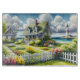 Un paisaje soñador de cottage costero lleno de encanto suave de acuarela y tranquilidad marina. Una acogedora cabaña junto al mar se encuentra entre senderos de jardín exuberantes, flores en flor y una cerca blanca brillante, creando una atmósfera cálida de cuento de hadas. A lo lejos, un faro alto se eleva junto a las olas azules brillantes del océano, agregando un toque náutico clásico a este entorno costero pacífico. Nubes esponjosas flotan a través de un cielo vibrante mientras la luz del sol baña flores pastel, céspedes verdes y macizos de flores alegres. El estilo de pinceladas suaves da a la escena un toque caprichoso y pictórico que recuerda a la vida costera acogedora, los jardines de cottage y las tardes relajadas junto al mar. Colores frescos de primavera, azules aéreos del océano y rosados suaves de flores se mezclan hermosamente para crear