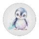 Una tierna tabla de corte de pingüino de color agua tierno.