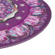 Dibujo de una vidriera de una antigua catedral europea: una ventana rosa, con toques de una gran variedad de colores, incluidos los tonos rosa y rojo cardenal, sobre un fondo rojo cardinal. Entrada de diamantes de imitación blancos (dibujado). Este motivo también está disponible en azul profundo en mis colecciones "Blue rosace". (sin IA)