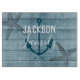 La madera azul es rústica y elegante. Superposición del sello Starfish con gráfico sólido de anclaje. Nombre de familia personalizado en negrita sans serif tipo de letra y moda tipo de letra de la familia de caracteres. Todo el texto es ajustable. Hermoso diseño para casa de playa, casa de vacaciones, barco, o decoración de casa con temática náutica.