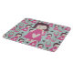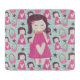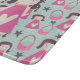 Chicas y bolsos diseñan pegatinas, ornamentos, tarjetas, almohadas, relojes de pared, abrebotellas, tablas de corte, cuadernos, relojes, carteras, tablas de borrado en seco y muchos otros artículos con un diseño bonito que incluye chicas con vestidos de corazón rosado, bolsos punteados de polka rosa y blanca, estrellas violetas profundas y un fondo de rayas azules.