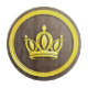 Una corona dorada bellamente decorada con diseños intrincados rodeada de un patrón floral, que simboliza la realeza, el lujo y la celebración, sobre un fondo suave y neutro que realza su elegancia regia.