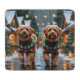This festive design captures the joyful spirit of the holiday season, featuring an adorable dogs.Nestled in a winter wonderland, complete with a decorated Christmas tree, and beautifully wrapped presents. Snowflakes gently fall, adding a magical touch to the scene, while the vibrant colors of the holiday decorations create a warm and cheerful atmosphere.