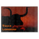 Tabla de cortar del fonolocalizador de bocinas grandes de Tejas. Con el subtítulo anaranjado del fonolocalizador de bocinas grandes de Tejas sobrepuesto en el fonolocalizador de bocinas grandes de Tejas en una silueta preciosa de la puesta del sol del escarlata. Los Texans amarán este toro negro dramático del fonolocalizador de bocinas grandes con los cuernos curvados enormes. Echa un tono naranja caliente en su cocina o en su Bbq. Perfeccione para cargar sus filetes para encantar y para sorprender a sus amigos del Texan cuando usted los pone en la parrilla de la barbacoa.