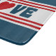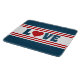 Diseño de amor con forma de corazón en estilo náutico sobre fondo rayado azul, rojo y blanco