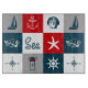 Diseño de temática náutica con decoración marina y acuática en cuadrados blancos, rojos, azules y grises impecables