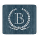 Diseño monograma con decoración de plumas de laurel sobre fondo azul