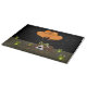 Este diseño presenta a un perro de Basset Hound que usa un gorra de disfraces de ranas rodeado de algunos amigos de ranas y globos. El fondo incluye siluetas de murciélagos y calabazas. ¡Feliz Halloween!