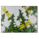 Esta tabla de corte de vidrio Dragonflies incluye libélulas amarillas brillantes en un fondo de fractales de arte digital.