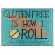 El gluten libre es cómo ruedo. Ningún símbolo del gluten o del trigo en tabla de cortar verde azulada de la raya del galón. Fondo de las rayas verde azuladas del galón. Personalizado con primero o apellido. Grande para el cocinero enterado amistoso o el panadero de la enfermedad celiaca de la alergia del trigo en su vida. Los diseños por la alergia de Lil abogan www.lilallergyadvocates.com