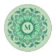 Añada un monograma a esta tabla de vidrio para un regalo impresionante para una pareja recién casada o aniversario. Utilícelo como tablero de corte, portavelas o pantalla. La elegante mandala verde le da un toque elegante a la decoración de las mesas. El diseñador da permiso al cliente para aplicar este diseño a otros productos de Zazzle. Cree un juego de regalos añadiendo servilletas de tela coincidentes, una bandeja de barrido, tartamudos y más.