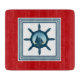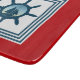 Diseño de temática náutica con decoración de escenas de vela en cuadrados rayados sobre fondo rojo