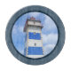Diseño de temática náutica con decoración de faro acuático en un marco azul oscuro. Es posible cambiar el color de fondo y añadir uno diferente al diseño con su elección.