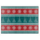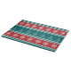 Feliz ilustracion navideño con árbol de Navidad y decoración de copos de nieve sobre fondo rayado rojo, blanco, azul y turquesa