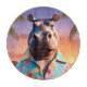 Gracioso hipopótamo usando una camisa hawaiana en una hermosa playa.
