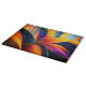 Bonita tabla de corte de vidrio con atrevido y brillante puesta de sol tropical floral y de playa | IA creó arte digital de fantasía surrealista.