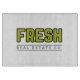 A modern glass cutting board with the FRESH logo. Durable, easy to clean, and perfect for prep work, serving, or adding a polished touch to your kitchen.