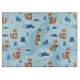 Charming red foxes in scarves wander a snowy blue forest of evergreens and mountains. Whimsical and wintery, perfect for cozy style.