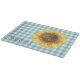 Encantador diseño de estilo campestre/granero que presenta fondo de cuadros gingham azul con gran flor de girasol en acuarela