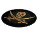 Calavera dorada y espadas cruzadas. Por el pirata discriminador. Tenga en cuenta que esta imagen no es oro real ni metalizado.
