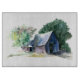Pintura de un granero rural entre los árboles. Impresión de acuarela original realizada por John A. Muir.