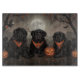 Descanse el espíritu espeluznante con este inquietante diseño de Halloween que presenta una manada de perros bajo un cielo oscuro, iluminado por la luna, rodeados de bates voladores y calabazas brillantes. Perfecto para los amantes de la diversión con sus peludos amigos.