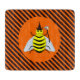 Esta impresionante tabla de corte tiene una adorable bruja de abejas amarillas con rayas negras. El Bee tiene grandes rayas negras brillantes y lindas antenas negras. Las alas de la abeja están dobladas para que se vean como una capa. La abeja lleva puesto un alto gorra de brujas negras con estrellas naranjas y moradas. Además, está sosteniendo una varita mágica con forma de estrella y con muchos colores diferentes. El fondo es un patrón de rayas naranjas y negras.
