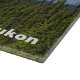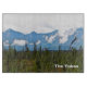 Escena típica de verano en el Yukón y otras zonas del norte. Terreno plano y pantanoso dominado por abetos negros. Nubes aferradas a una cordillera lejana. También aparece el texto que dice "El Yukón". Una tierra hermosa y frágil.