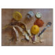 Esta gran tabla de corte de vidrio tiene una foto de una superficie de cocina muy desordenada impresa en ella. La foto parece como si alguien no hubiera aclarado los restos de cocinar una comida sabrosa. Por toda la tabla de despiece hay dos mitades de limón, un poco de chili en polvo, una piel de plátano y algunas pieles al azar, junto con una cuchara y un frasco con la tapa removida. Esta tabla de corte hará una edición de buen corazón a la cocina de cualquiera. Esta tabla de calidad hará una idea de regalo original o un regalo merecido para usted.
