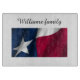 La bandera de Texas estrella, roja, blanca y azul con el nombre de la familia impreso en esta gran tabla de corte. Un gran regalo.