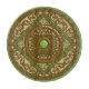 Esta mandala temática Virgo representa una piedra perecedera rodeada por el símbolo del signo, la constelación y el símbolo alquímico de la Tierra entre filigree y tejidos.