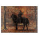 Acá un espíritu de Halloween, una manifestación humana de la temporada: Una mujer de lecho negro, en la parte trasera de un caballo negro de medianoche, sostiene en alto una linterna en un bosque rico en las hojas amarillas, naranjas y rojas de otoño. Su cara está medio escondida detrás de una capucha oscura, pero todavía se puede ver que las miradas de vuelta directamente a ti, el espectador. El caballo oscuro también te mira directamente, soplando vapor de sus fosas nasales, una imagen mucho más enfurecida que la de su piloto pacífico.