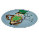 Una linda lechuza de granero con un sombrero de cabeza de leprechaun verde con dos tréboles en ella.