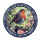 Esta tabla de corte de vidrio azul marino muestra el dicho "cuando los robos parecen estar cerca" con letras blancas. En el centro se exhibe una pechuga roja en bonito. En la memoria amorosa de tu ser querido. Este diseño contiene A.I.