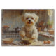 Add a soft and elegant charm to your kitchen with this Maltese design featuring a sweet little pup baking in a cozy setting. With its silky white coat and gentle expression, this artwork brings warmth and grace to any space.