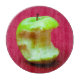 Foto de una gran manzana verde sobre fondo rojo. La mordedura grande ha sido sacada de la manzana.