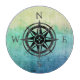 Junta verde azulada De Corte De Vidrio Redondo Del Mar De Ombre. Un rosa de brújula para mantener tus travesías oceánicas. Disfrute del elegante efecto de ilusión óptica con los tonos Verde azulados a azul a turquesa del fondo sombrío. Añadir una cita, nombre, sentimiento o monograma al personalizar. ¡Estilo náutico y costero!