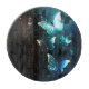 Mariposas brillantes nocturnas de menta sobre fondo abstracto negro.