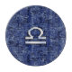 Un cromo plateado como el símbolo Libra Zodiac en un fondo de impresión de textura de diseño de estilo de camuflaje digital azul marino. Un diseño de arte urbano moderno para una gran idea de regalo de cumpleaños personalizado. Utilice el vínculo "Preguntar a este diseñador" para contactarnos con sus solicitudes de diseño especiales o para obtener ayuda con su proyecto de personalización.