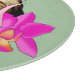 Retrato de un mono de león de cabeza dorada Tamarin con tres orquídeas de fucsia en un fondo verde
