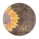 Esta tabla de corte rústico está decorada con un girasol acuático amarillo sobre un fondo de madera de granero. Personalizable con facilidad con tu nombre e inicial. Perfecto para un regalo de bienvenida. Acuarela original © Michele Davies.
