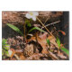 Esta tabla de corte incluye una foto de un morel de primavera y una flor de primavera blanca.