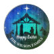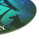 Natividad Escena en azul simple, verde y negro con texto blanco para usted a estrellas personalizares y blancas. Tablero de corte de vidrio redondo.